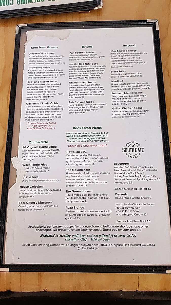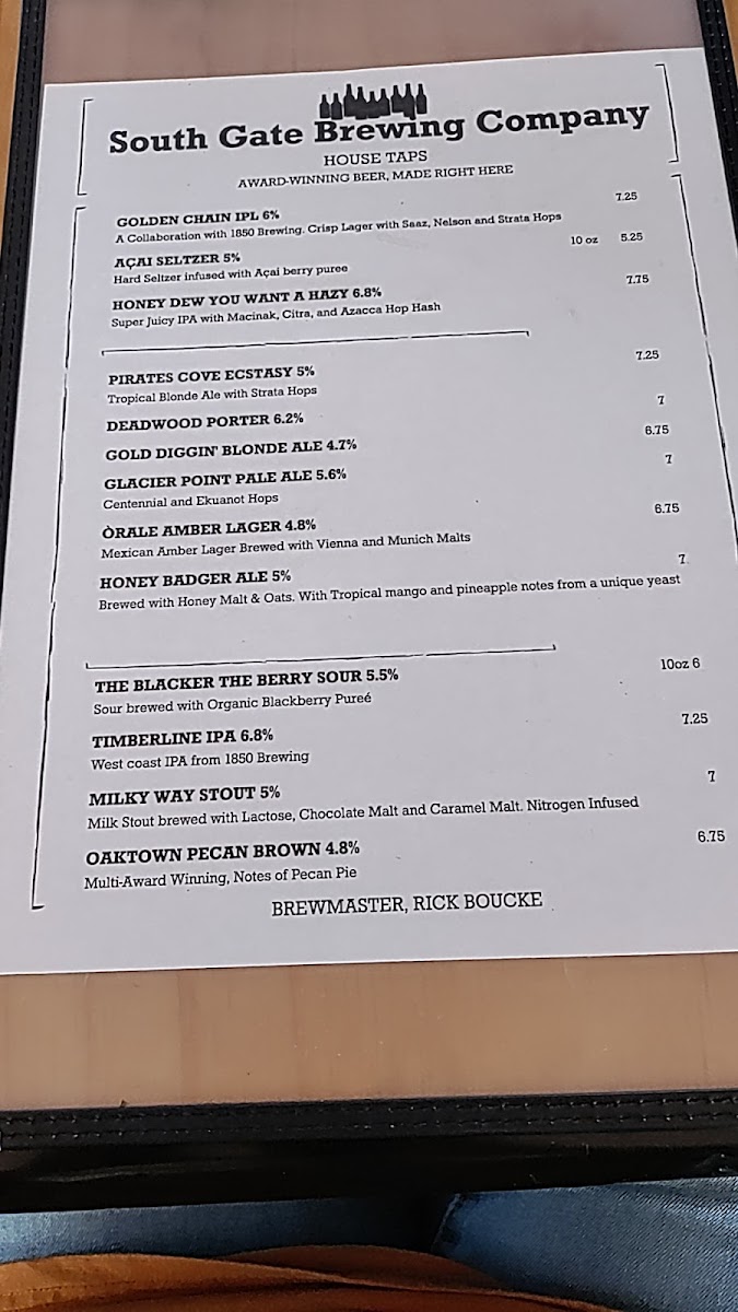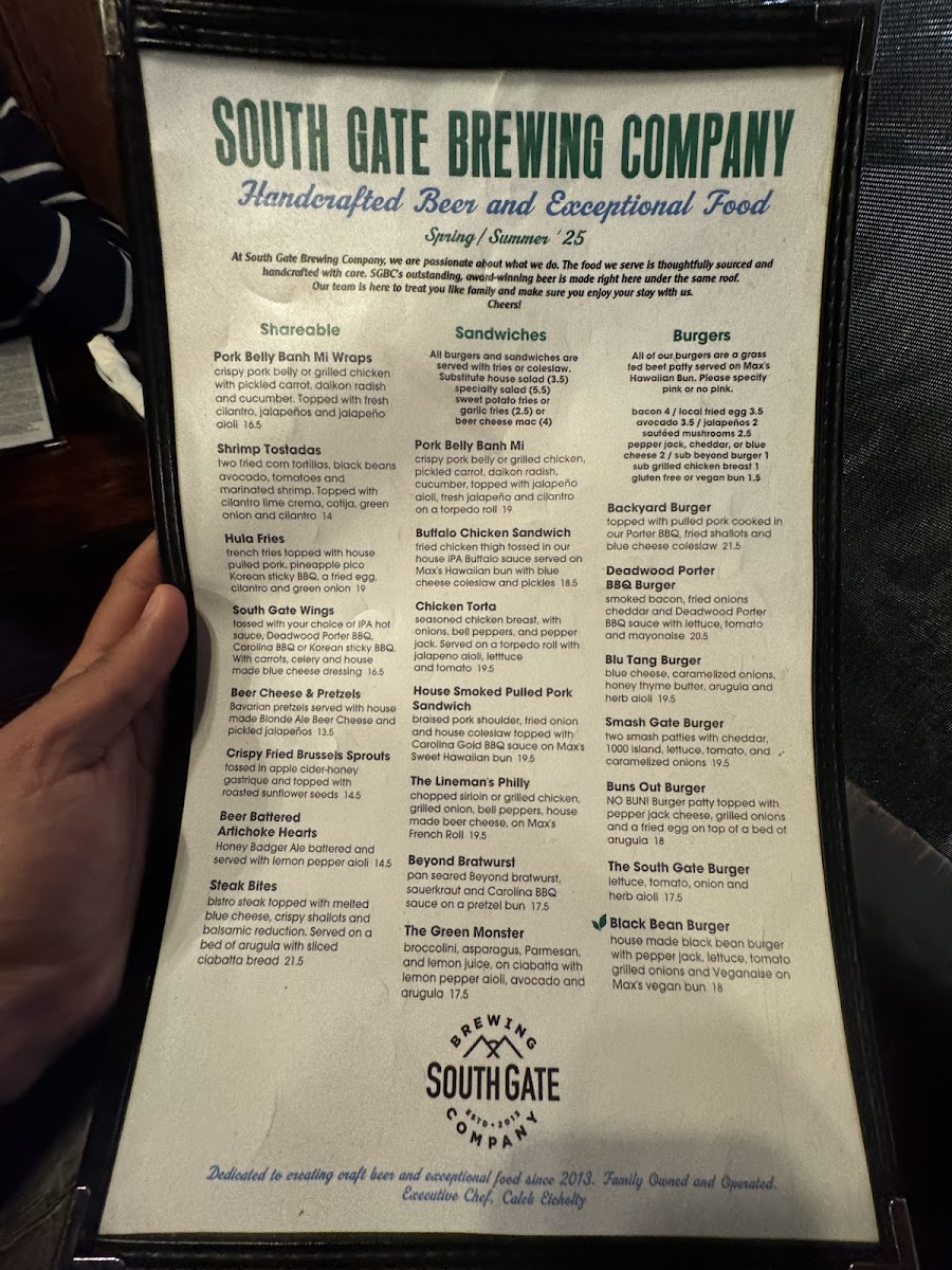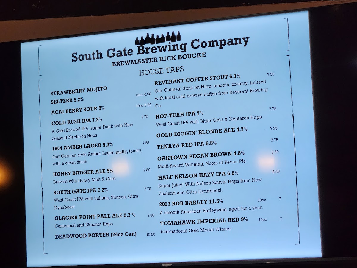 South Gate Brewing Company Menu